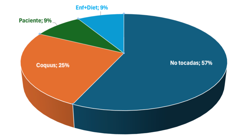 La primera conclusión más llamativa es que el 25% de las bandejas son modificadas automáticamente por el programa de gestión de dietas Coquus. Este dato es más impactante si lo comparamos con el total de bandejas modificadas, porque ese porcentaje se convierte en:
